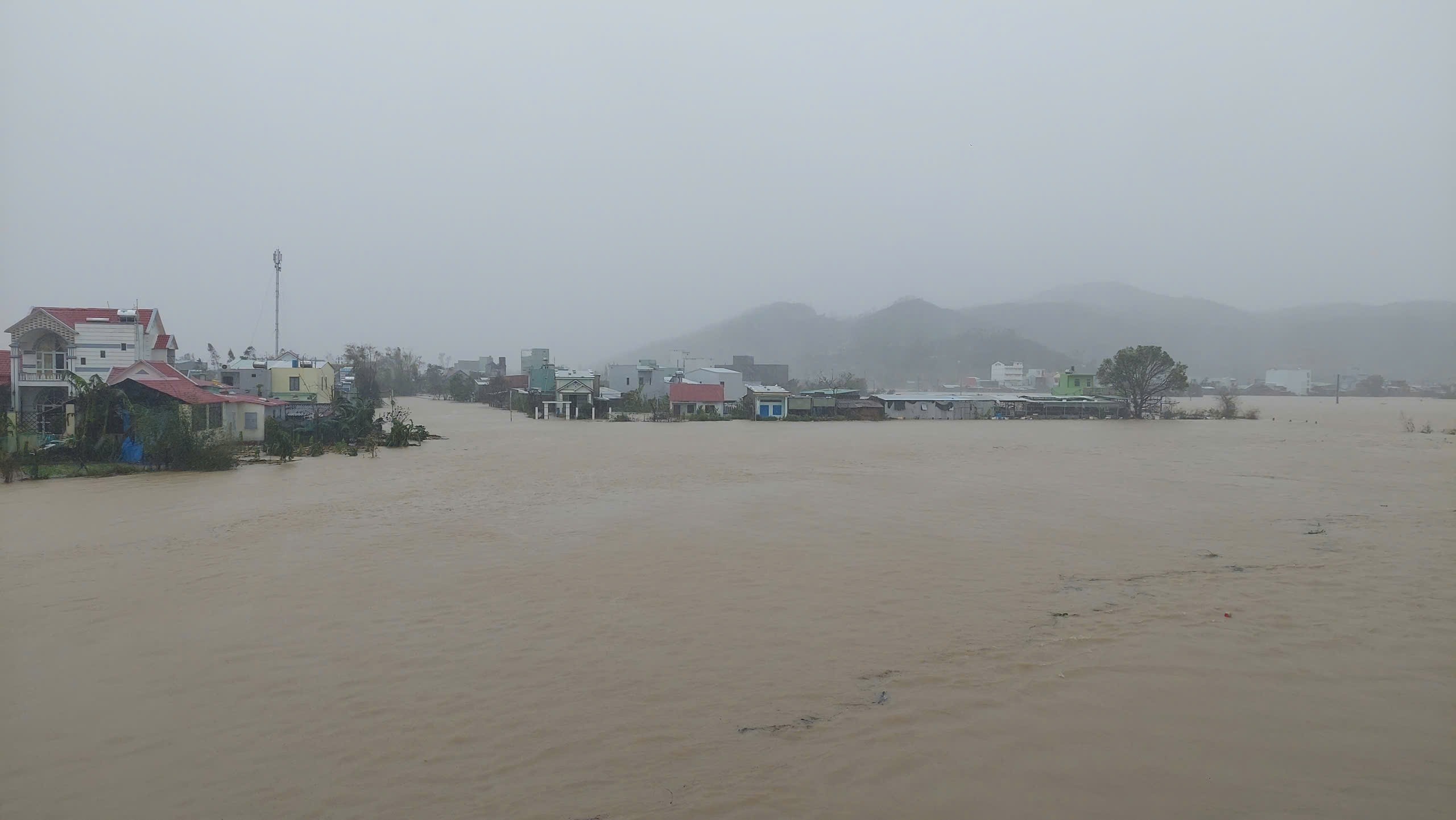 Theo đó, khoảng 3 giờ sáng cùng ngày, nước lũ dâng cao làm vỡ đê sông Luật Lễ ở xã Tuy Phước (TT.Diêu Trì cũ), khiến dòng nước đổ ồ ạt xuống vùng hạ lưu và gây ngập sâu nhiều khu vực.